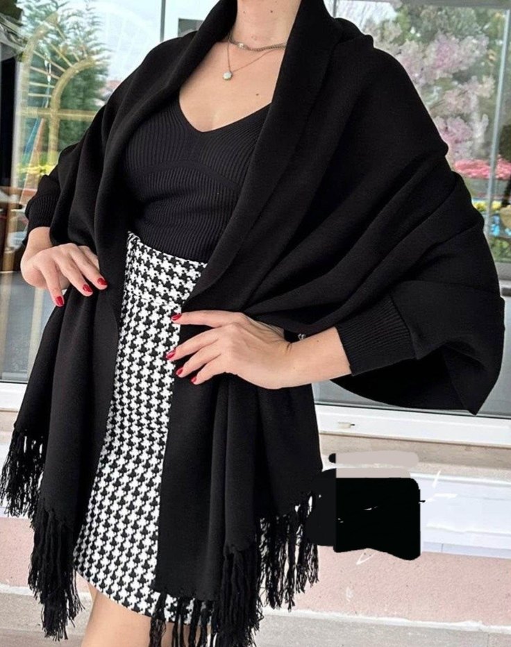 püsküllü triko panço 38 beden den 50 bedene kadar uyumlu