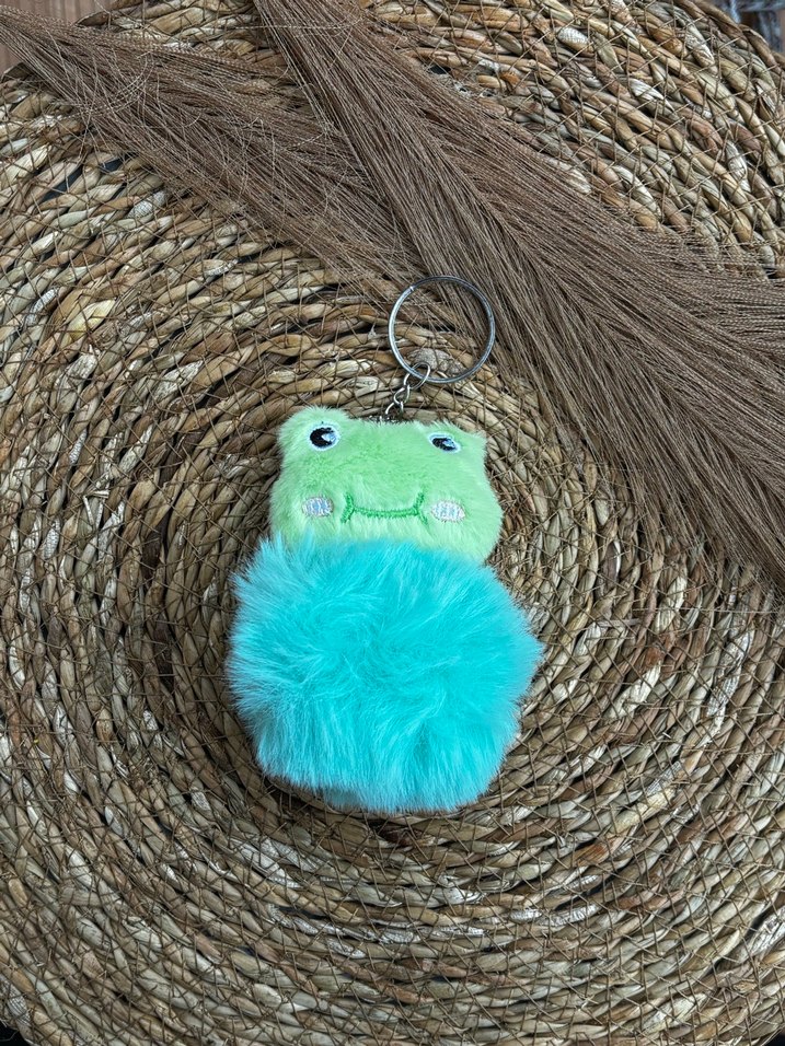 Bohem tarzda, retro ve hippie esintili, turkuaz renkli püsküllü rahat kadın anahtarlık.