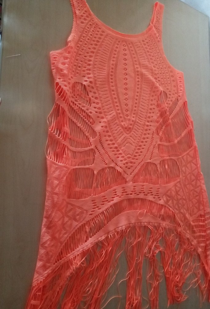 Püsküllü Turuncu Dantel Detaylı Sahil Elbisesi Pareo