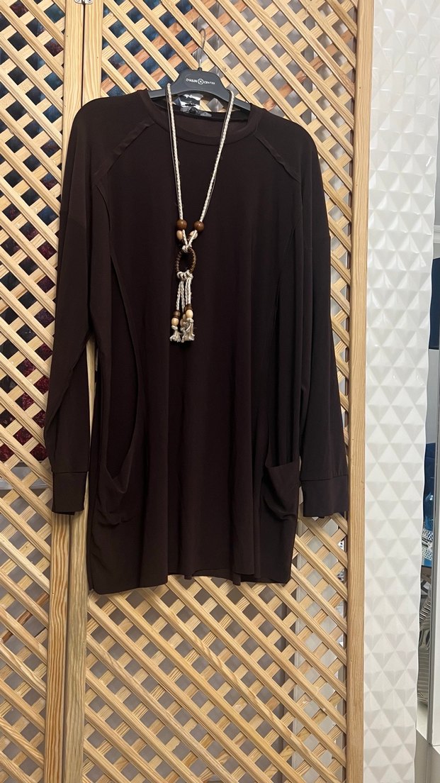 Uzun kollu, yüksek yakalı kahverengi bohem tunik. Yumuşak sentetik kumaştan, bol kesimli ve püskül detaylıdır. Günlük kullanıma uygundur. Ürün bir bedendir bir beden 36 44 uyumludur tek ürün fiyatıdır isterseniz somon rengi de mevcuttur