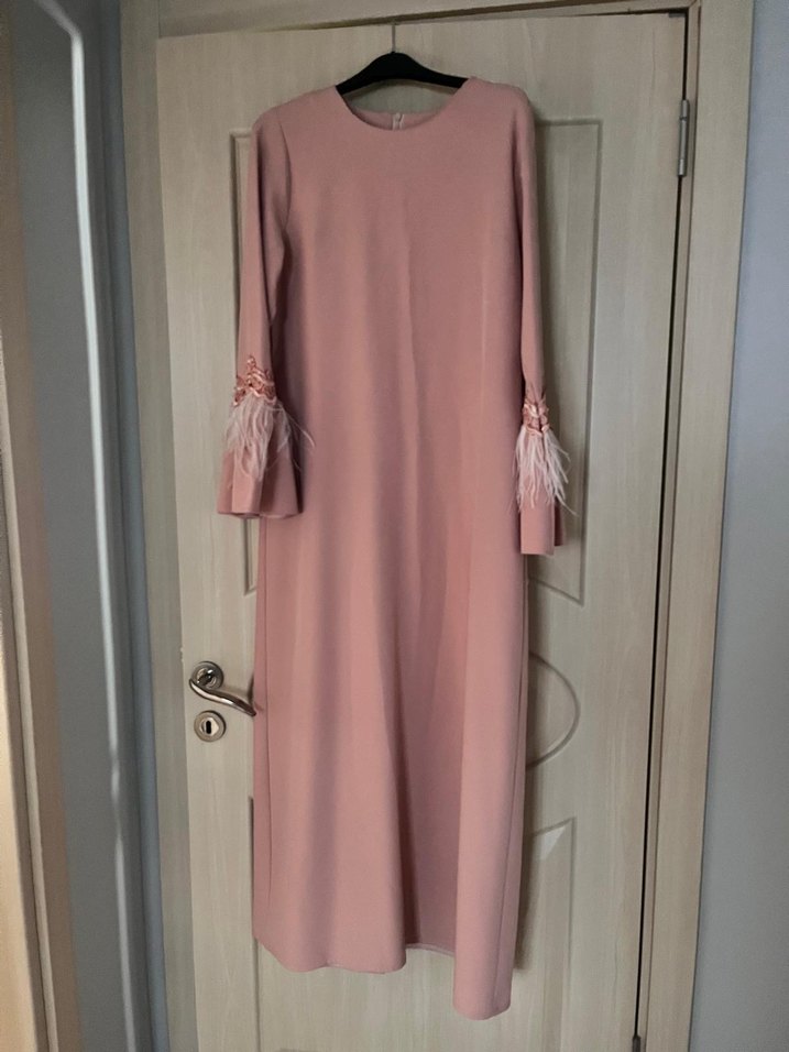 Püsküllü detaylı uzun kollu, pastel pembe renkte, regular fit uzun elbise. Minimalist, desensiz tasarımıyla gündelik kullanıma uygundur.