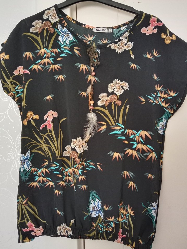 Püsküllü V Yaka Siyah Çiçekli Kadın Bluz