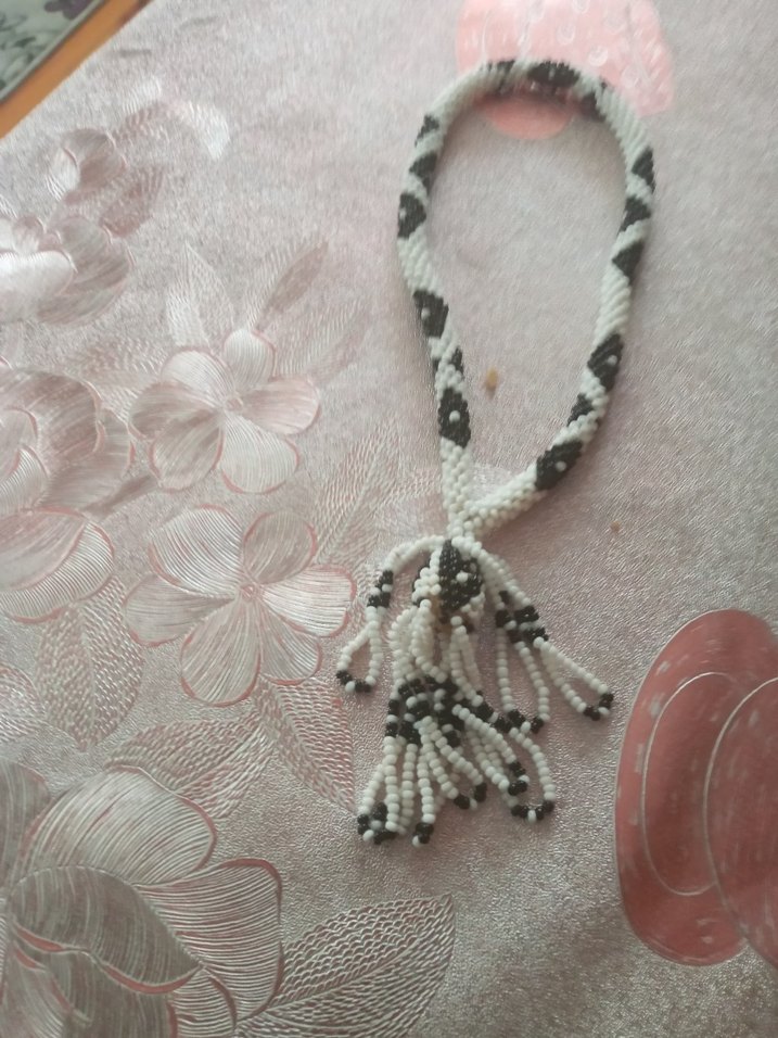 siyah ve beyaz renklerde yılan desenli, püsküllü bohem tarzda günlük kullanıma uygundur.