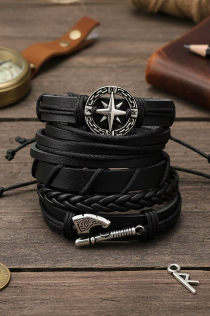 Pusula Balta Tasarım 5'li Hakiki Deri Bileklik