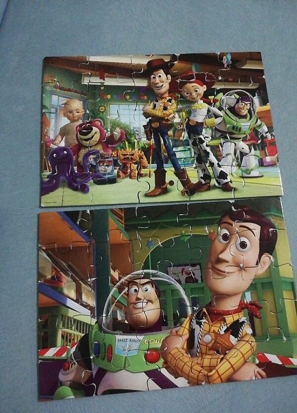 2' kutu 2 farklı görselde ahşap puzzle. Oyuncak Hikayesi. (3-6 yaş arası) Yapılmış halini belirttim. . Eksik parça yok. Kutulu gönderilecektir