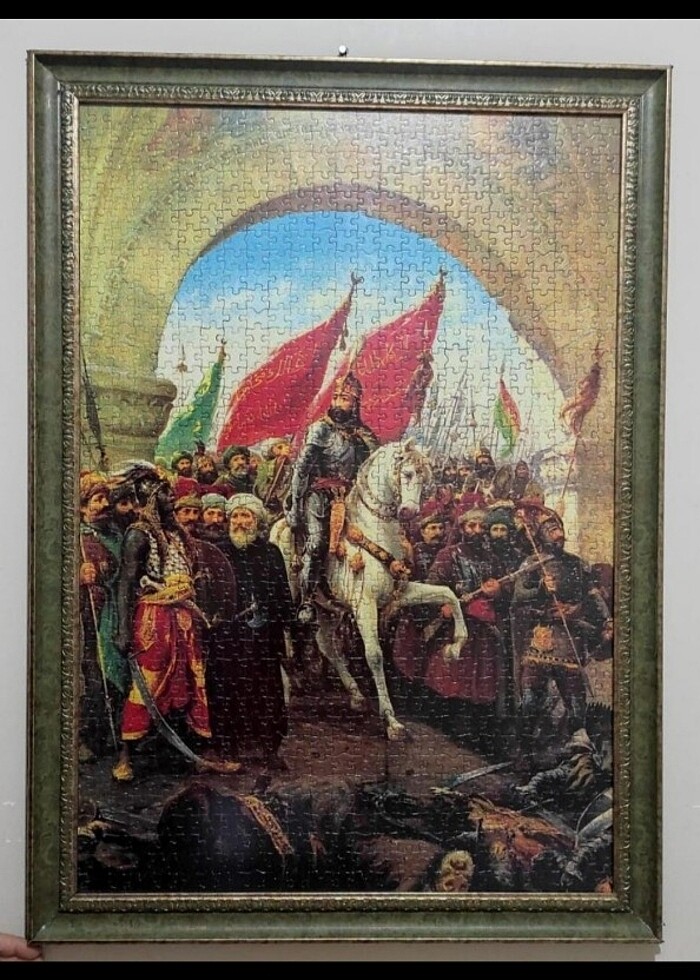 Tabloda Fatih Sultan Mehmet'in İstanbul'a girişi resmedilmiştir. İhtiyaç fazlası üründür. Herhangi bir eksiği yoktur. Görüldüğü şekilde satışa sunulmuştur.