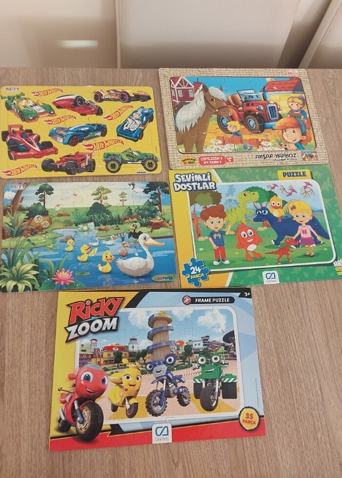 5 adet yapboz, ufak tefek kusurlar var ancak eksiksiz adetleri yanlarinda yaziyor