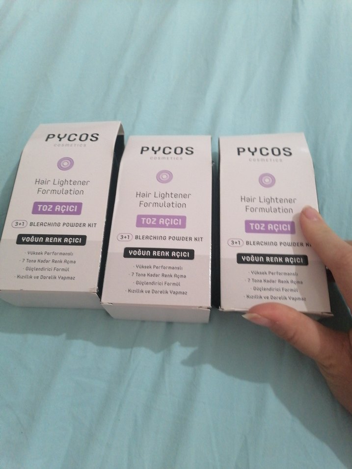 Pycos saç açıcı toz seti, yüksek performanslı 3'ü 1 arada formülü ile 7 tona kadar saç rengini açar, tahriş ve zarar vermez.