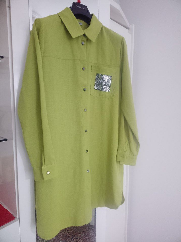 PYS marka 3 nmara Yeşil renk,Cepli,Yırtmaç detaylı Bayan Gömlek
