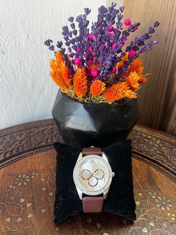 ℹ️ Q&Q marka taş detaylı kadın kol saati ⌚️ Kahverengi deri kordonu ve taşlı kasa çerçevesiyle zarif bir şıklık sunar. Az kullanılmıştır, herhangi bir kusuru yoktur. Pil takıldığında çalışır. ⚠️ Ürünlerim farklı şehirlerden kargolanmaktadır. Lütfen danışmadan ürün birleştirme, toplu alışveriş yapmayınız.