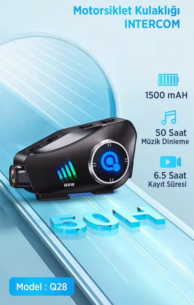 Q28 Kameralı İntercom 32GB SD Kartlı Motorsiklet kask kulaklık