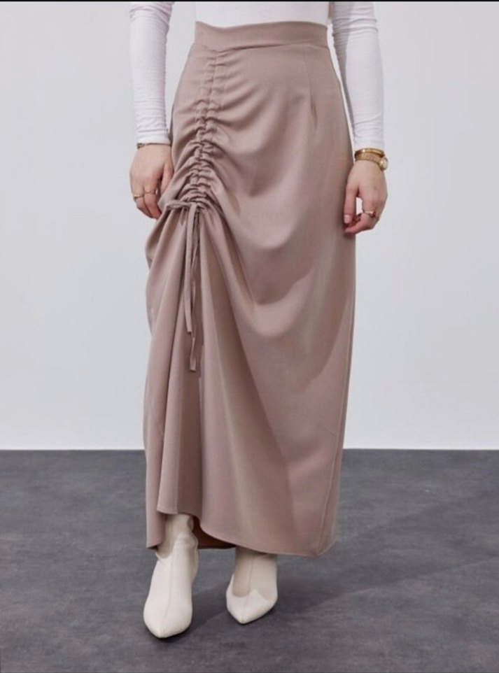 bej renk uzun etek 1 kere goyildi temiz defosuz