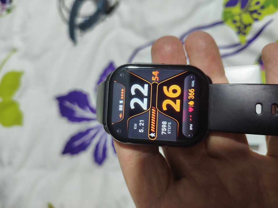 Adım sayar, kalp atış hızı ve mesafe gibi detaylı fitness verilerini canlı ekranda gösteren siyah akıllı saat. ⌚