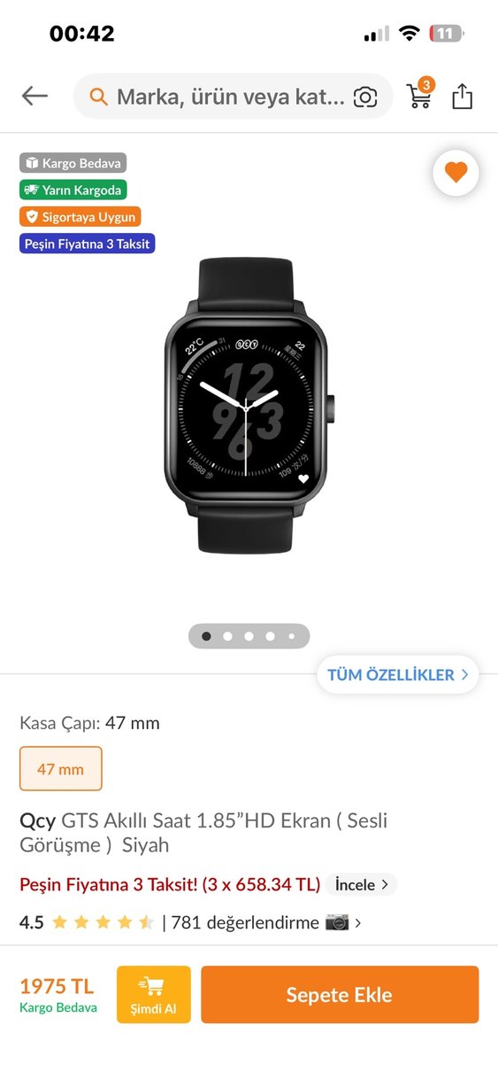 Qcy GTS akıllı saat, 1.85 inç HD ekran ve sesli görüşme özelliğine sahiptir. 47 mm kasa çapı 2 3 kez takıldı hiçbir sorunu yok sarjı 15 gün gider