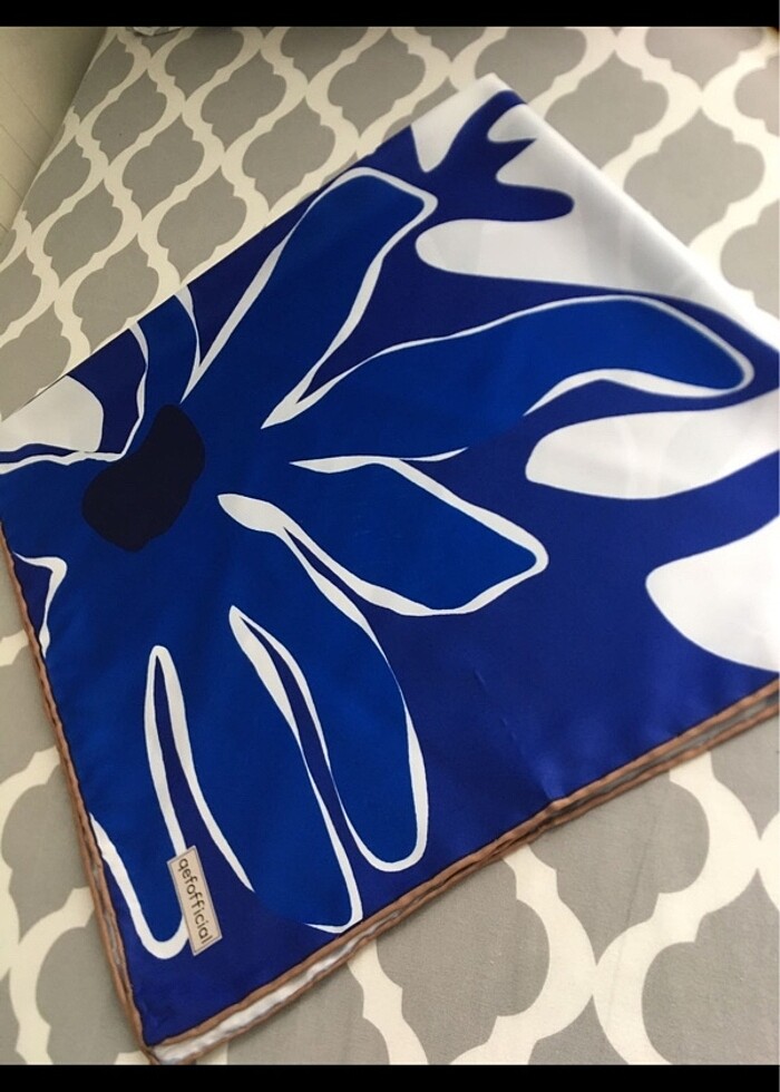 QEF marka twil eşarp. Yeni ve hiç kullanılmadı. Rengi LACİVERT&BEYAZ