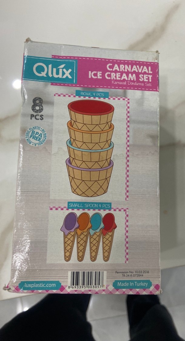 Qlux marka pastel renkli 8 parçalı dondurma seti. BPA içermeyen plastikten üretilmiştir ve çocuklar için güvenlidir.