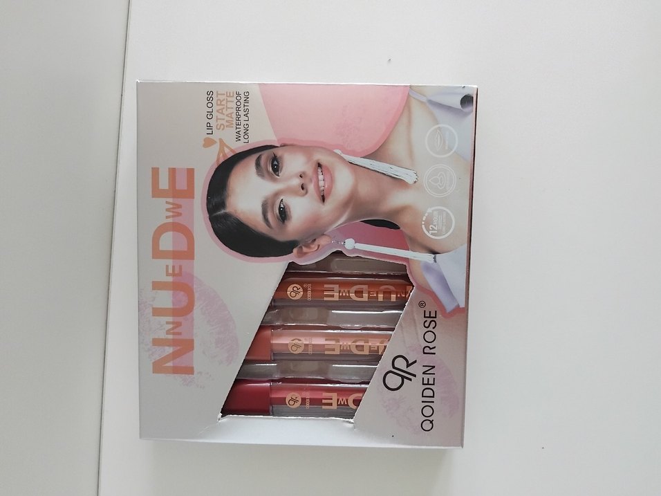 QOİDEN ROSE Nude dudak parlatıcısı seti, açık bej tonlarında parlak ve uzun süre kalıcı nem sağlar.