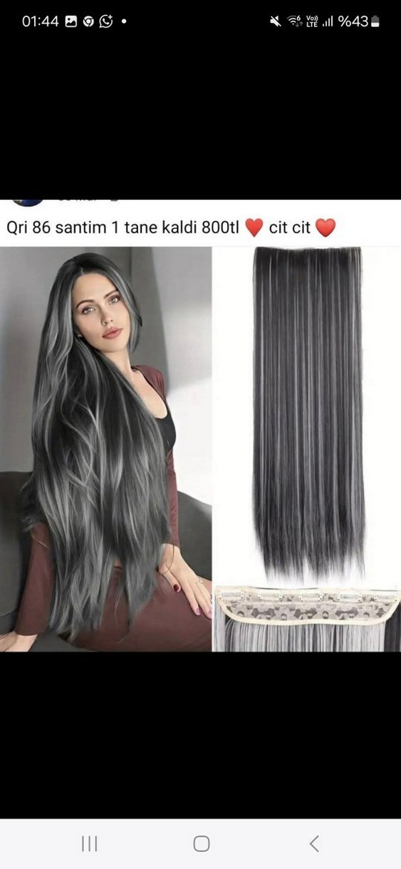 Diger markasına ait 86 cm uzunluğunda düz saç aksesuarı. Sadece 1 adet kaldı, fiyatı 800 TL. Saçlarınıza uzunluk ve şıklık katmak için uygun. ♀️