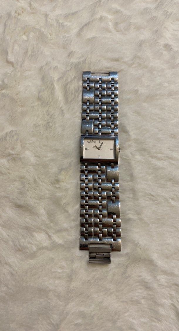 Gri renkli, tokalı metal kayışa sahip kadın saati, minimalist dikdörtgen kadranıyla çağdaş ve zamansız bir görünüm sunar. ⌚orjinal