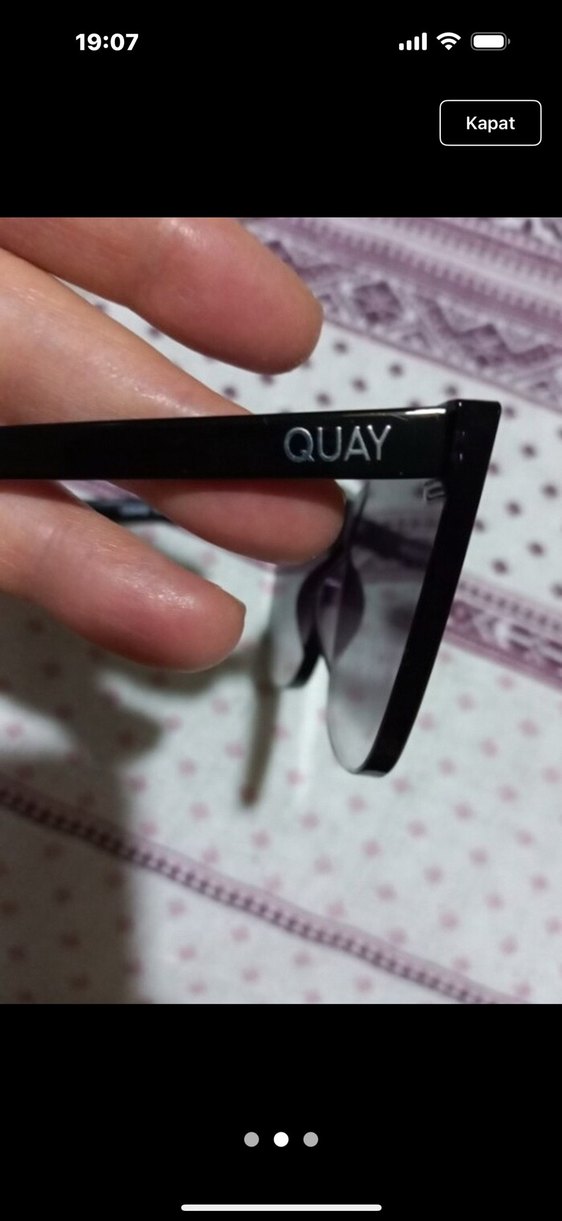 Quay markalı, parlak koyu gri kadın gözlüğü, minimalist tasarım, sokak modası ve avangart tarzlar için uygun. ️