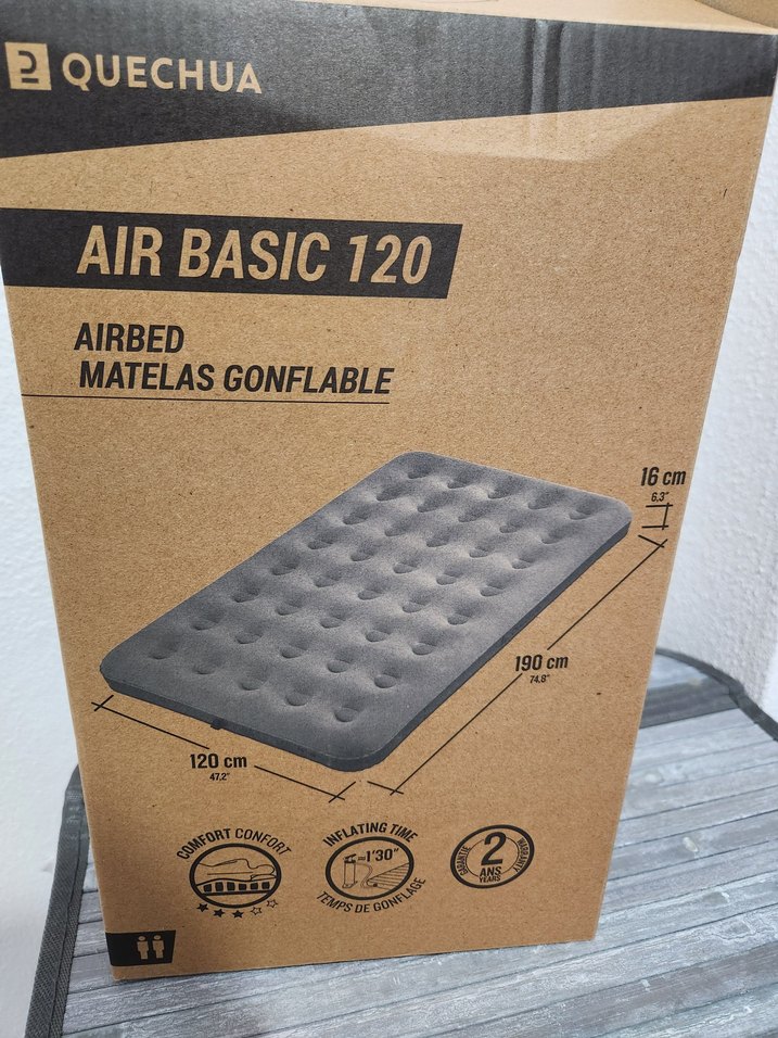 Quechua Air Basic 120, 120x190 cm ölçülerinde, 16 cm kalınlığında gri şişme yatak