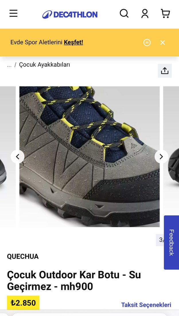 Quechua çocuk outdoor kar botu, gri renkli, kauçuk tabanlı ve velcro bantlıdır. Rahat ve sportif tarz için uygundur. ❄️ su geçirmez sıcacık tutar 37 NUMARA