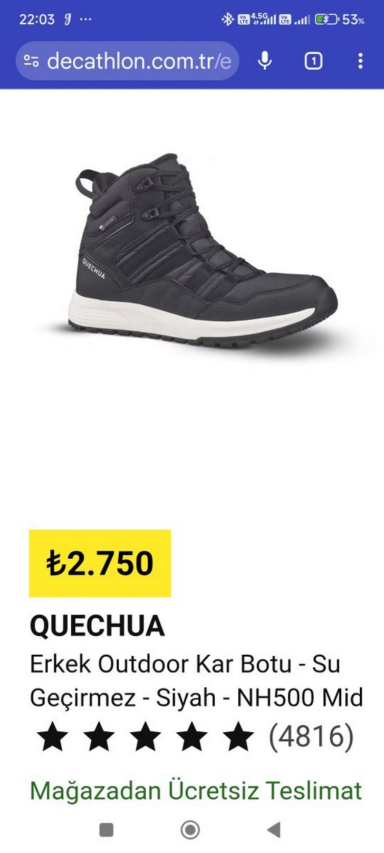 Quechua erkek outdoor kar botu, siyah ve gri tonlarda, cırt cırtlı bantlı ve kauçuk tabanlı, spor ve günlük kullanım için uygun. ♂️
