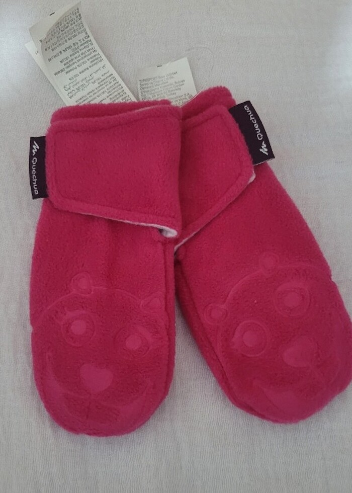 QUECHUA Marka 3-4 aylık kız çocuk polar tek parmaklı outdoor eldiven kolay giyilip çıkarılabilir. Sıcacık tutar.