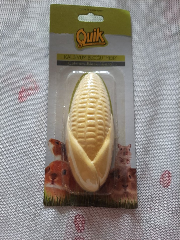 Quik markasına ait küçük evcil hayvanlar için mısır şeklinde kalsiyum bloğu.