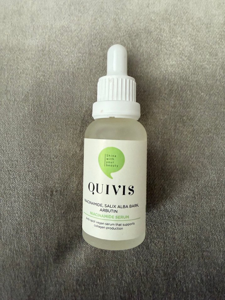 QUIVIS serumu, arbutin ve niasinamid içerir, kolajen üretimini destekleyerek yaşlanma karşıtı bakım sağlar. Hiç kullanılmadı iade yoktur iyice incele alınız