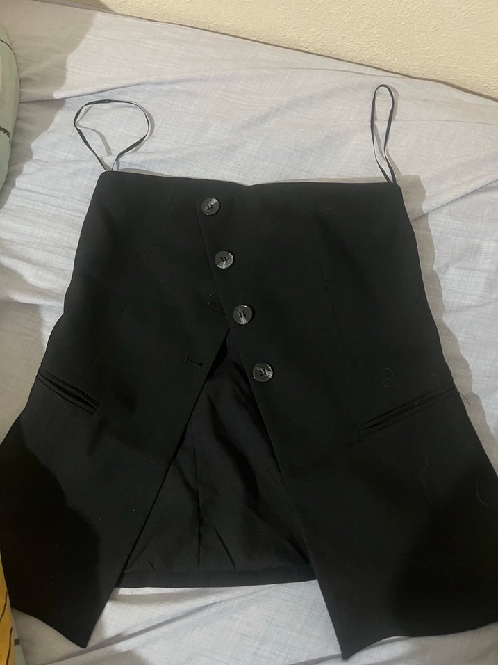 önden düğmeli alt kısmında düğme yok çok şık duruyor hiç giymedim