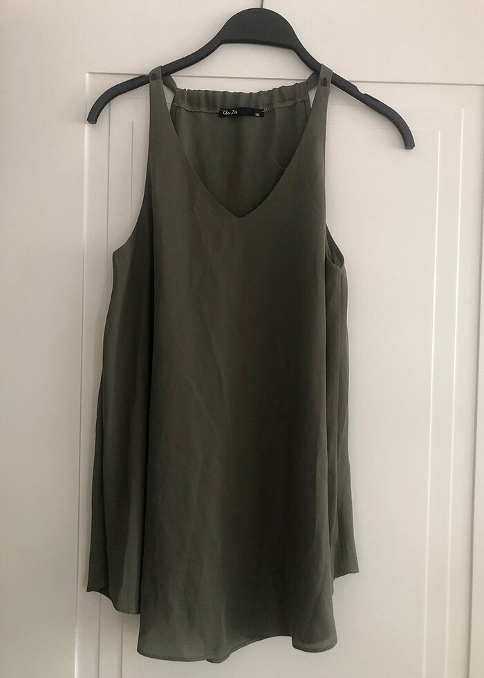 Bi iki defa kullanılmış yeni haki rengi kolsuz gömlek