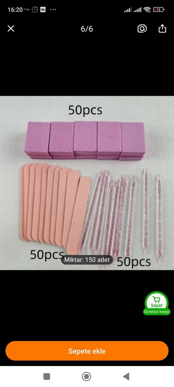 150 parçadan oluşan pastel pembe manikür seti, törpüler, bufferlar ve itici çubuklar içerir.