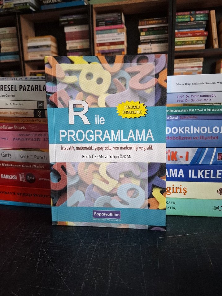 İstatistik, matematik, yapay zeka, veri madenciliği ve grafik konularını çözümlü örneklerle anlatan R programlama kitabı.
