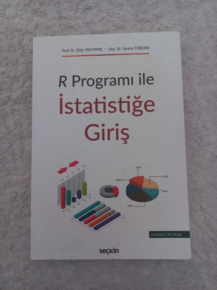 R programı kullanılarak istatistiğe giriş yapılır, 135 çözülmüş örnek içerir ve temel kavramları açıklar.