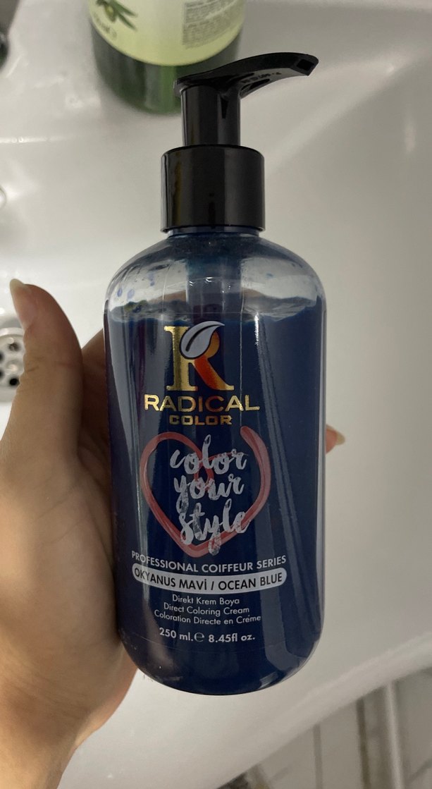 Radical Color Okyanus Mavi 250 ml pompalı direkt saç boyası. Canlı renkler sunar, stilinize renk katın.