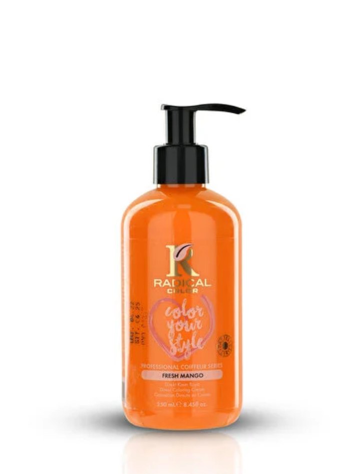 Radical Color Fresh Mango saç boyası, pürüzsüz uygulama için pompalı şişede canlı renk sunar. Saçınıza taze mango tonu katar.