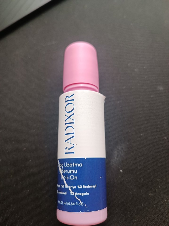 Radixor saç uzatma serumu, 25 ml roll-on formda, saç büyümesini desteklemek için formüle edilmiştir. işaretli yere kadar kullanıldı