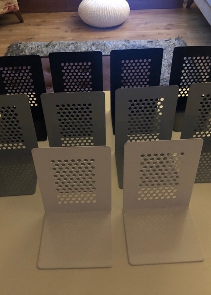 Raf üstü kitap veya obje desteği 4 adet siyah 4 adet gri 2 adet beyaz 1 Tane fiyatıdır Hiç kullanılmadı #kitap #kırtasiye #çanta #raf #kitaptutucu