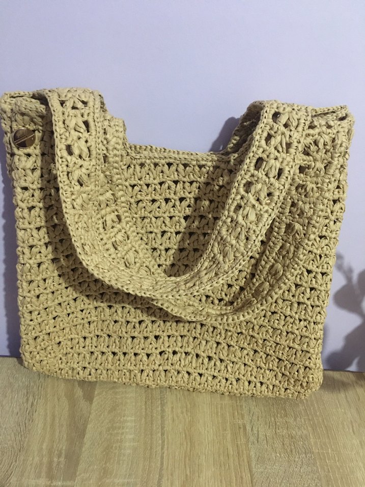 El emeği rafya ipten çanta , en ölçüleri yanlar kapalı iken 40 cm açıkken 50 cm - uzunluk 38 cm - sap ölçüleri 58 cm dir.