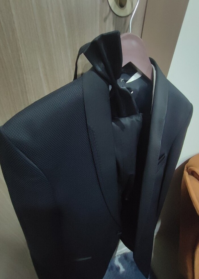 Gömlek , papyon , yelek dahil tam takım olarak gönderilecektir. Ürün bir kez kullanıldı sadece iç cep kısmının üzerinde bir söküğü bulunmaktadır fotoğraflardan bakabilirsiniz onun dışında herhangi bir kusuru yokrur ,Ragazzo marka.