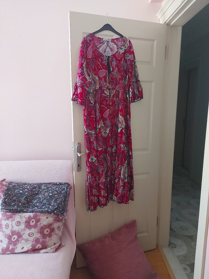 en 61 cm,boy 130 cm temiz , sıfır ayarındadır.Dökümlü kumaş fazlalıkları kapatır