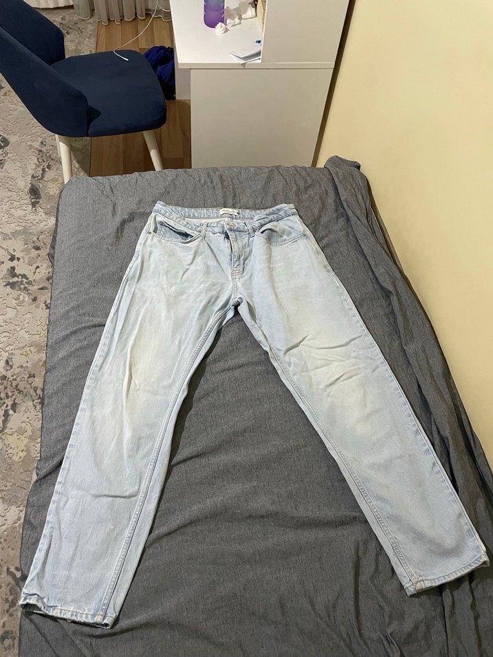 Defacto’dan almıştım artık bu tarz giymiyorum. Resimde kırışık ama ütü yapıldığında şık duruyor. Defo yoktur. Beden : 30 Renk : Buz Mavisi