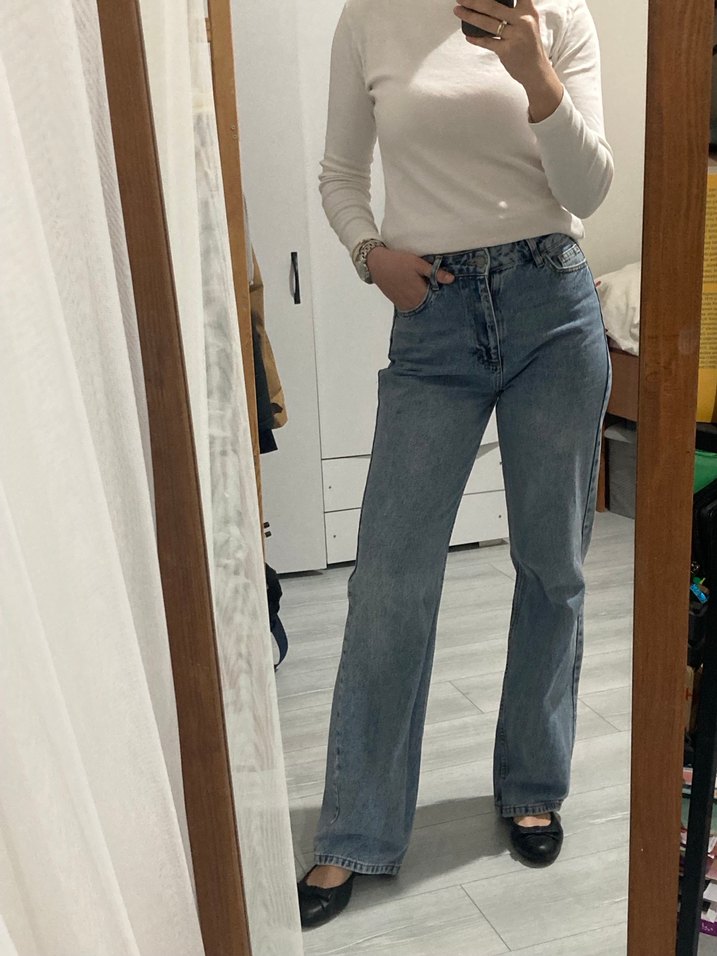 Rahat Kesim Beyaz Midi Boy Kadın Kot Pantolon