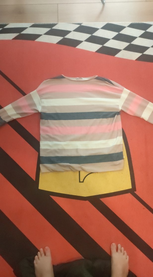 Rahat kesim, uzun kollu ve yuvarlak yakalı hamile tişörtü, pastel tonlarda çok renkli yatay çizgilerle. Yumuşak sentetik kumaştan, gündelik rahat kullanım için uygun. geniş kesim yumuşak kumaşıyla kışlık sıcak tutar temiz kullanılmıştir sorunu yoktur 44 46 beden uyumludur renkleri canlidir
