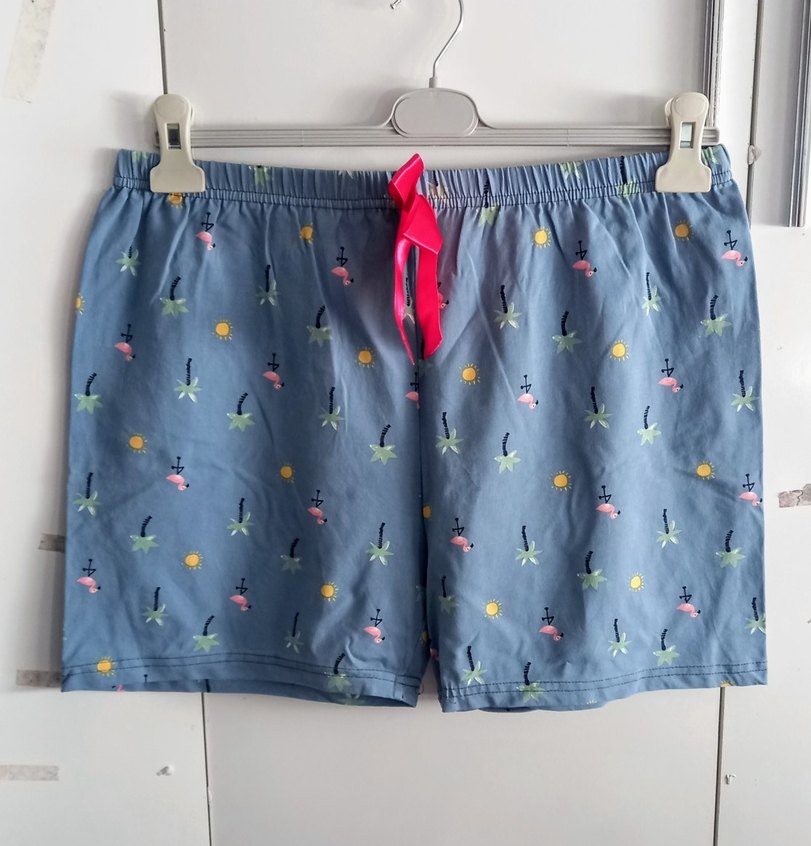 Rahat kesim, renkli desenli ve düğmeli detaylı mavi hamile şortu, yumuşak sentetik kumaştan üretilmiştir. Rahat sokak stili için uygundur. bel esnetince 50 cm boy 37 cm