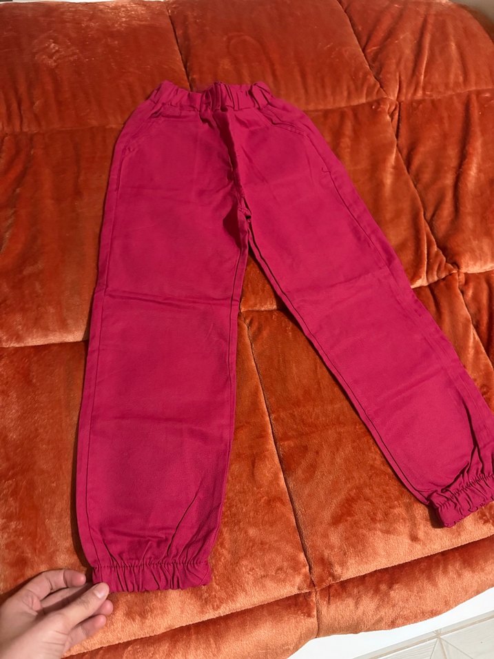 , elastik bel ve bilek detaylı rahat kesim pembe erkek çocuk pantolonu.