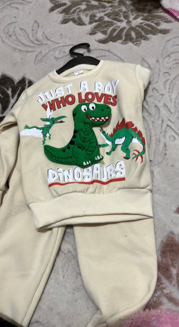 Uzun kollu, bisiklet yaka, dinozor baskılı ve örgü detaylı rahat kesim erkek sweatshirt. Yumuşak ve sıcak kumaştan üretilmiştir.