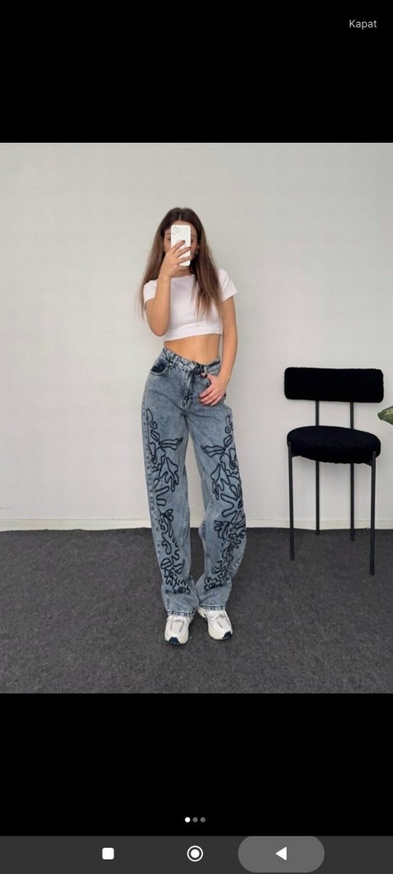 Gri-mavi batik desenli, rahat kesim kadın kot pantolon, günlük sokak stili için uygun. pazarlık yapilabilir