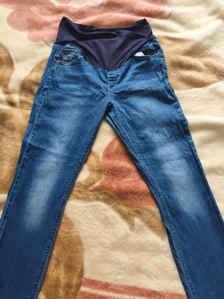 Esnek bel bantlı, rahat kesim hamile kot pantolon. Günlük rahat kullanım için klasik mavi tonunda.. çok rahat cok az giyildi